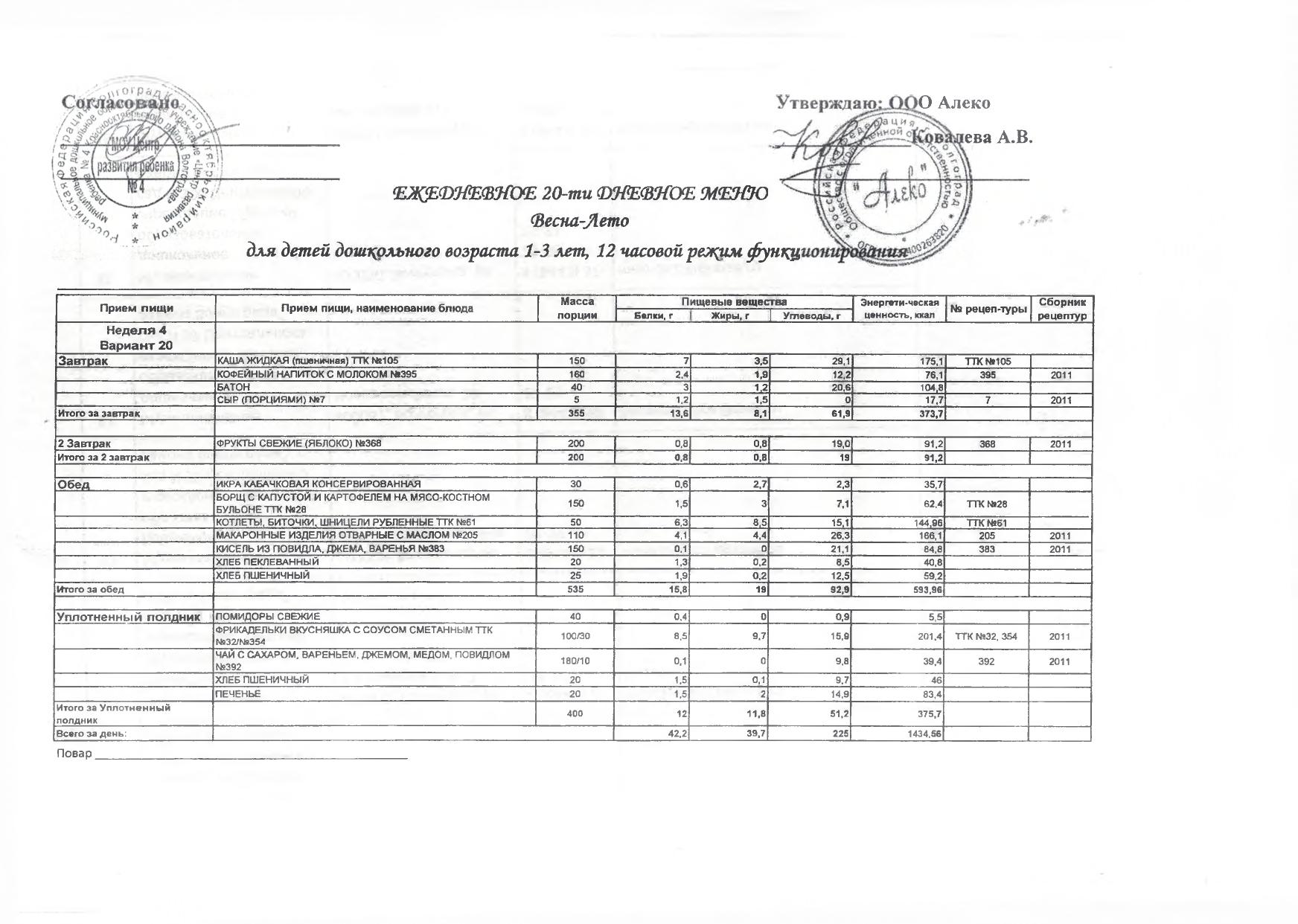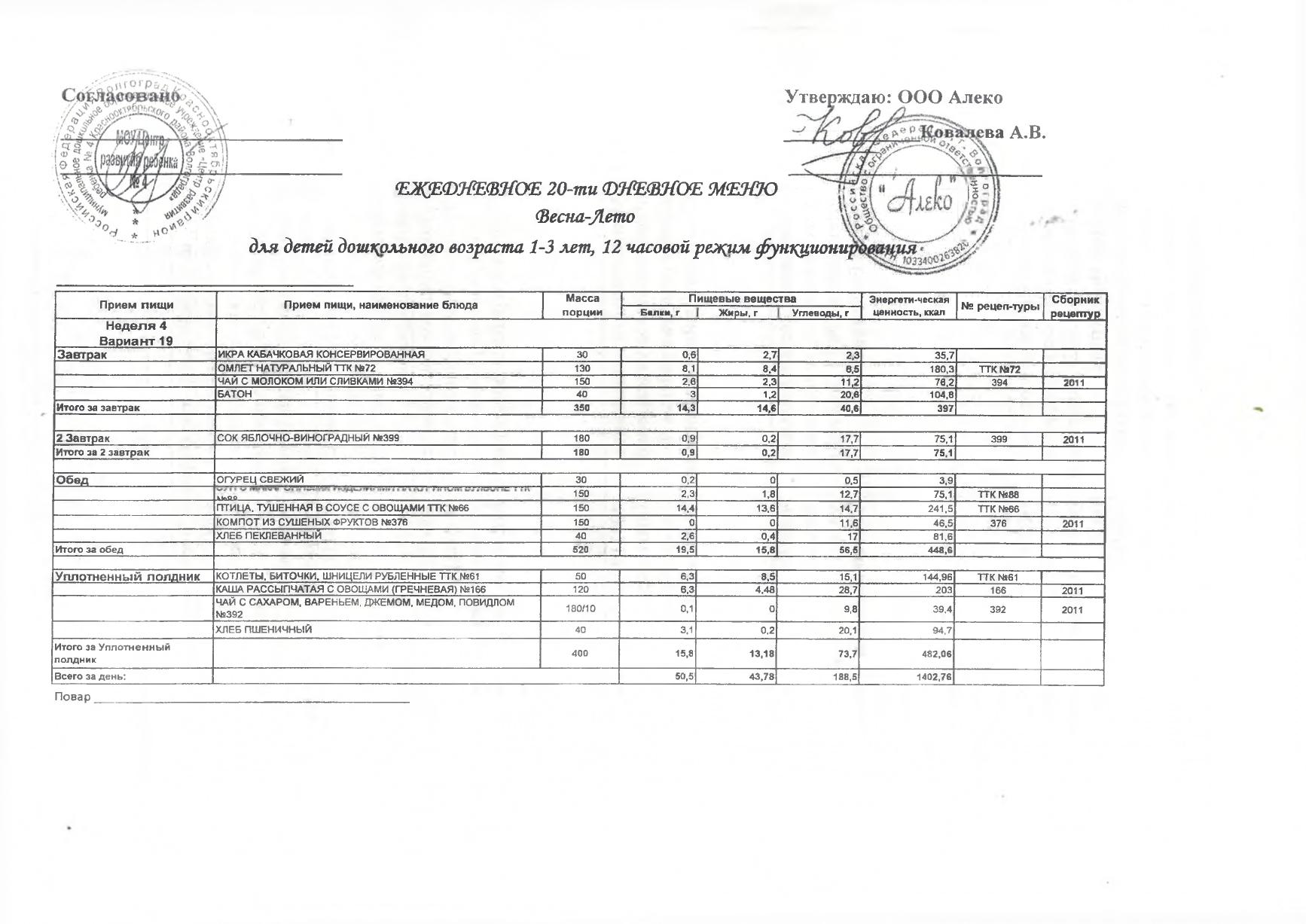 Меню на 30 марта 2026 г. для детей 1-3 лет