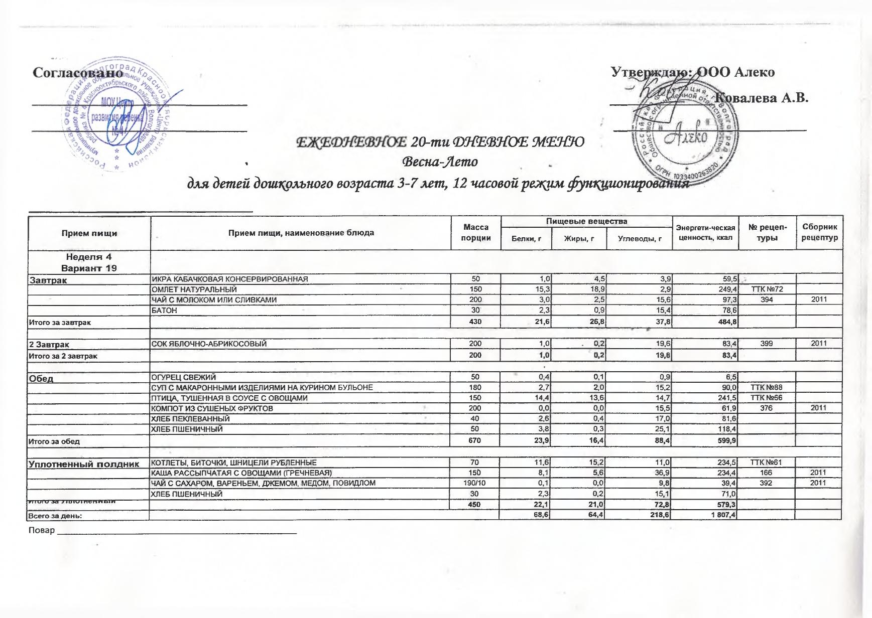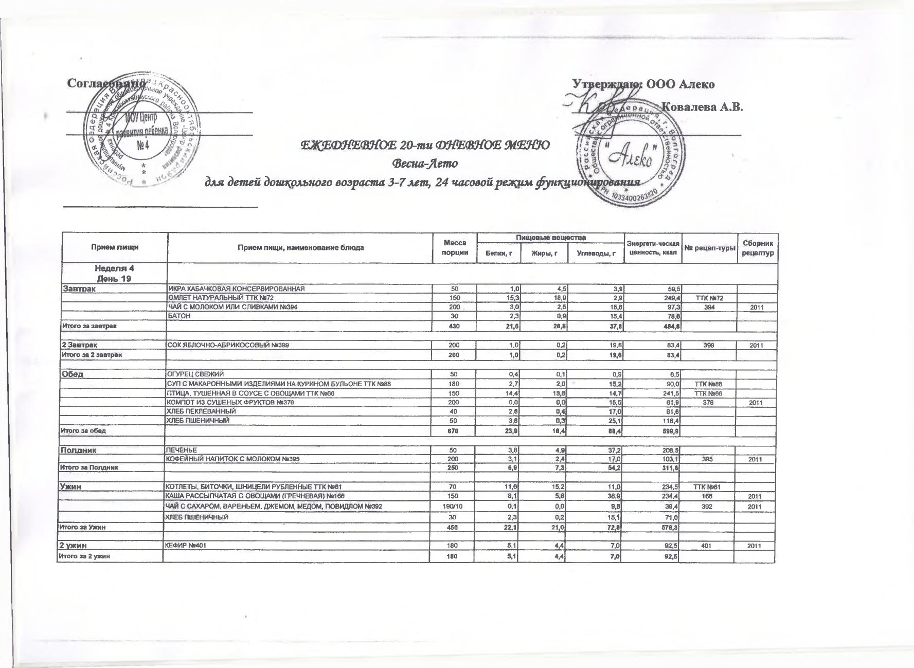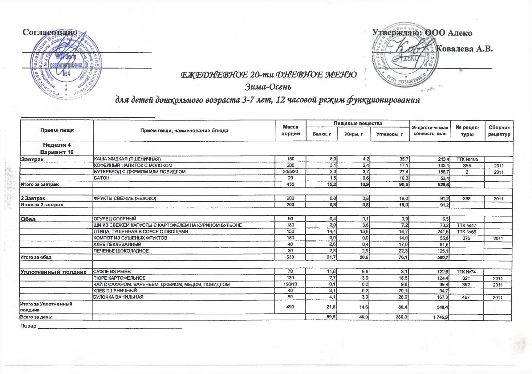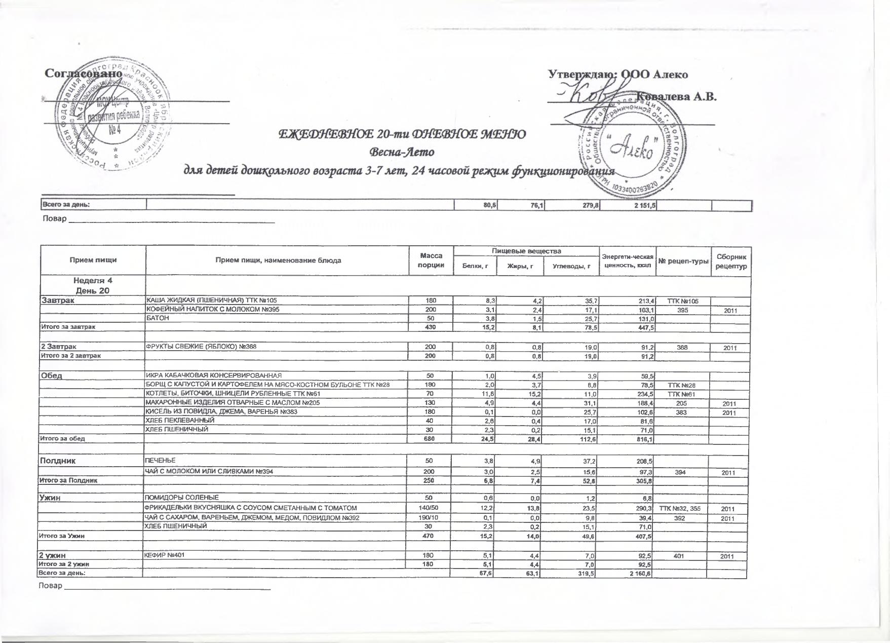Меню на 30 марта 2026 г. для детей 3-7 лет (24 часа)